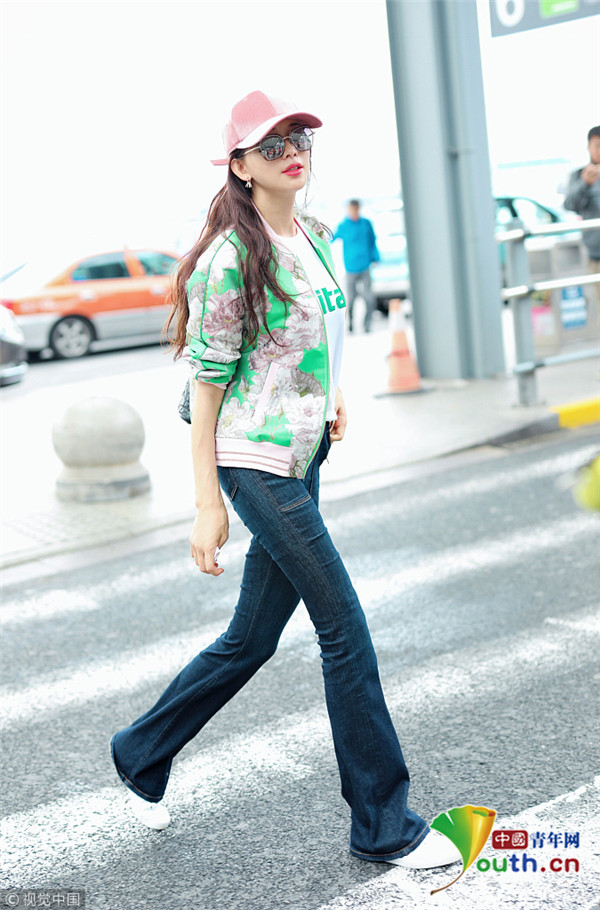 2018年10月16日,上海,林志玲亮相机场,她身穿绿色印花外套搭配粉色鸭舌帽十分清新靓丽,乖乖坐小车抿嘴甜笑比V嘟嘴频卖萌。