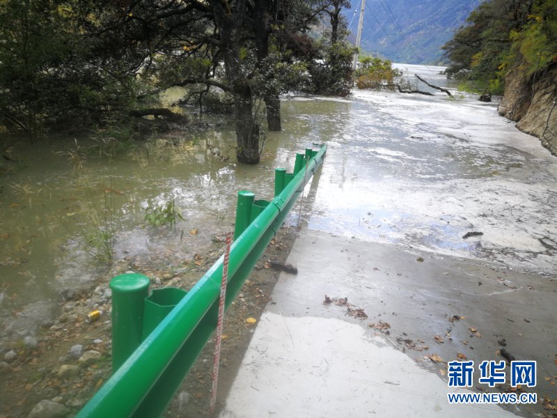 通往西藏林芝米林县加拉村的道路被水淹没(10月18日摄)。 新华社记者 觉果摄