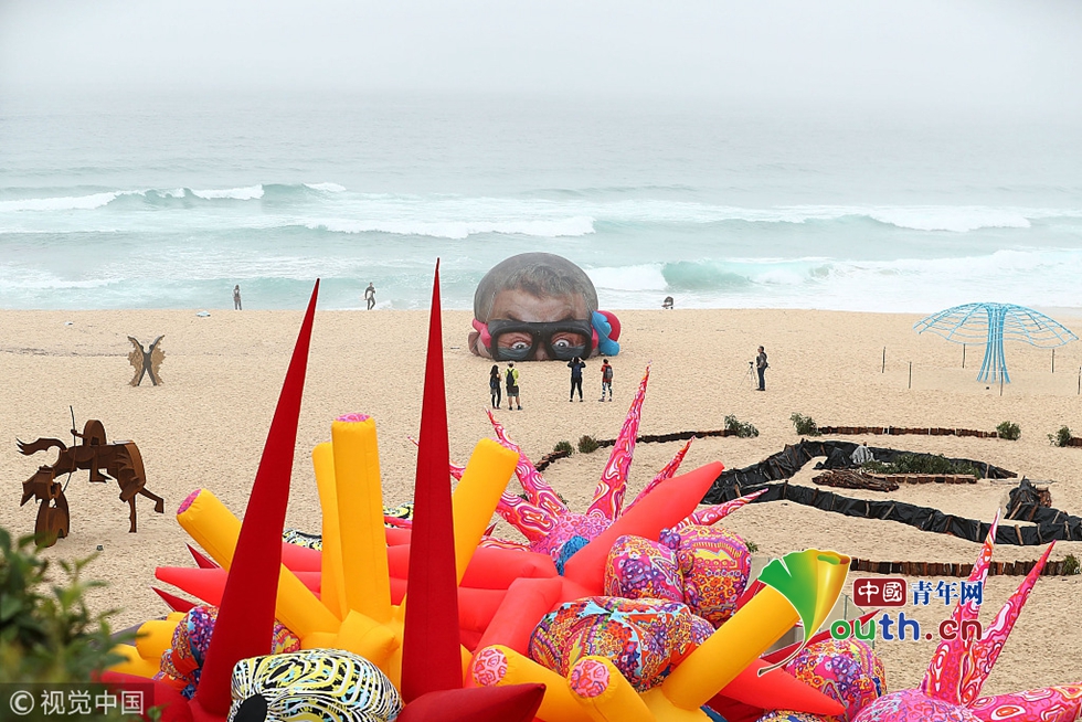 慎点!澳大利亚邦迪海滩雕塑展一幕