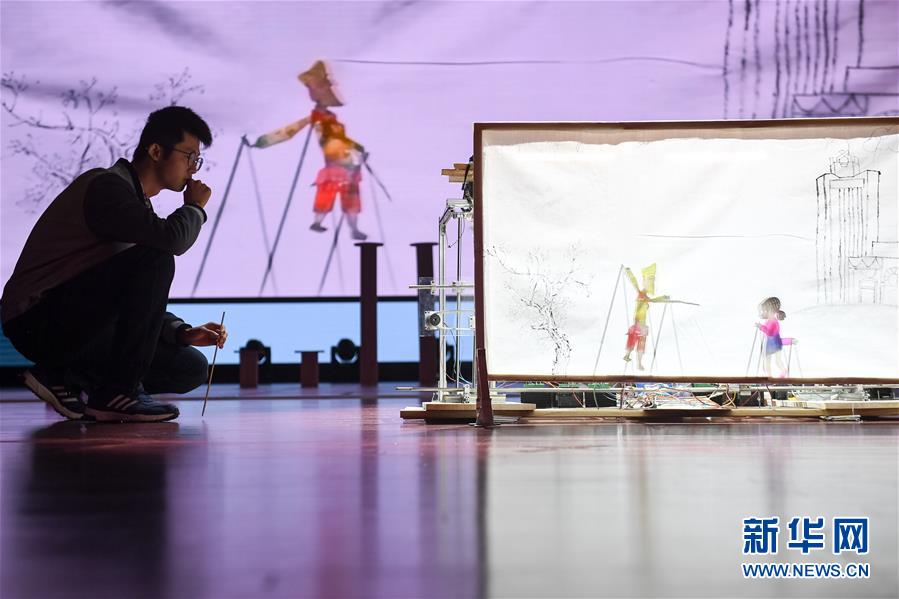 10月21日,在位于安徽合肥的中国科学技术大学,“人五成影”队带着皮影戏机器人参加比赛。新华社记者张端摄