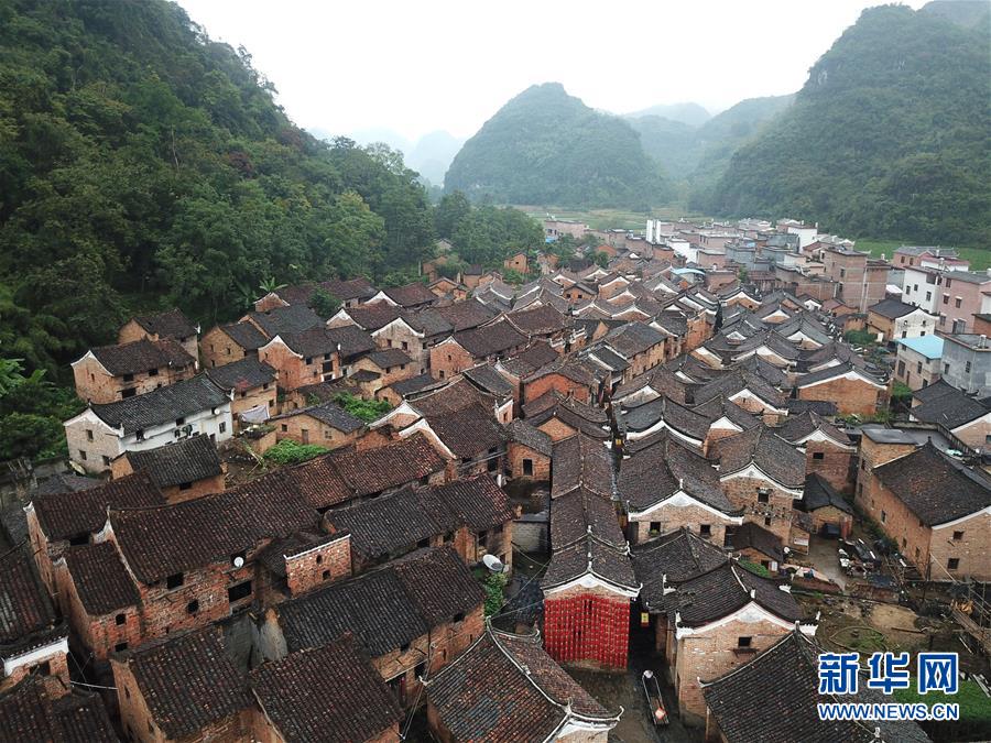 广西富川瑶族自治县朝东镇秀水村连片民居(10月19日无人机拍摄)。 新华社记者 周华 摄