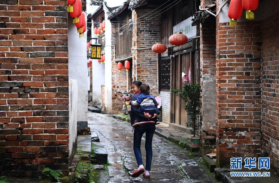 村民行走在广西富川瑶族自治县朝东镇福溪村青石铺就的古道上(10月19日摄)。 新华社记者 周华 摄