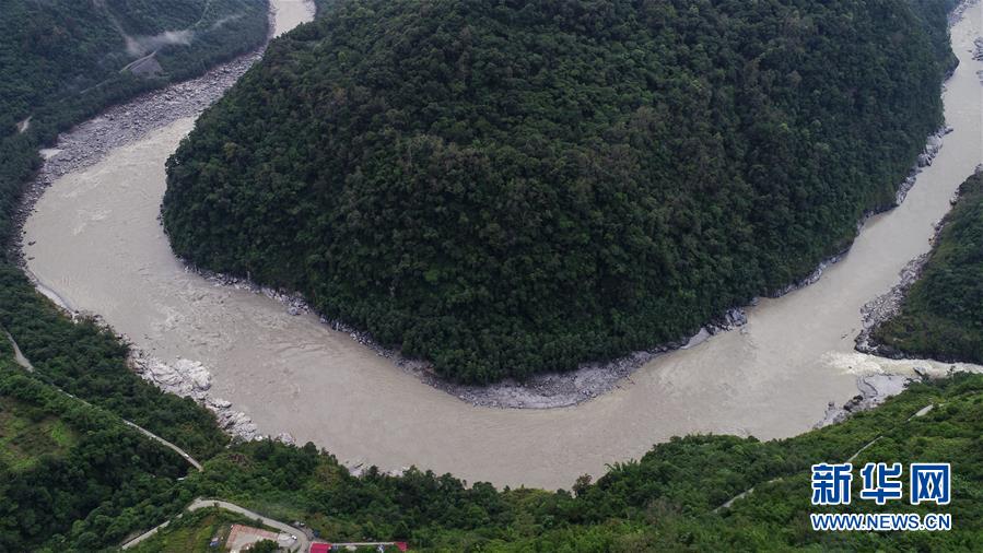 洪峰过境后的西藏雅鲁藏布江墨脱段局部画面(10月20日无人机拍摄)。