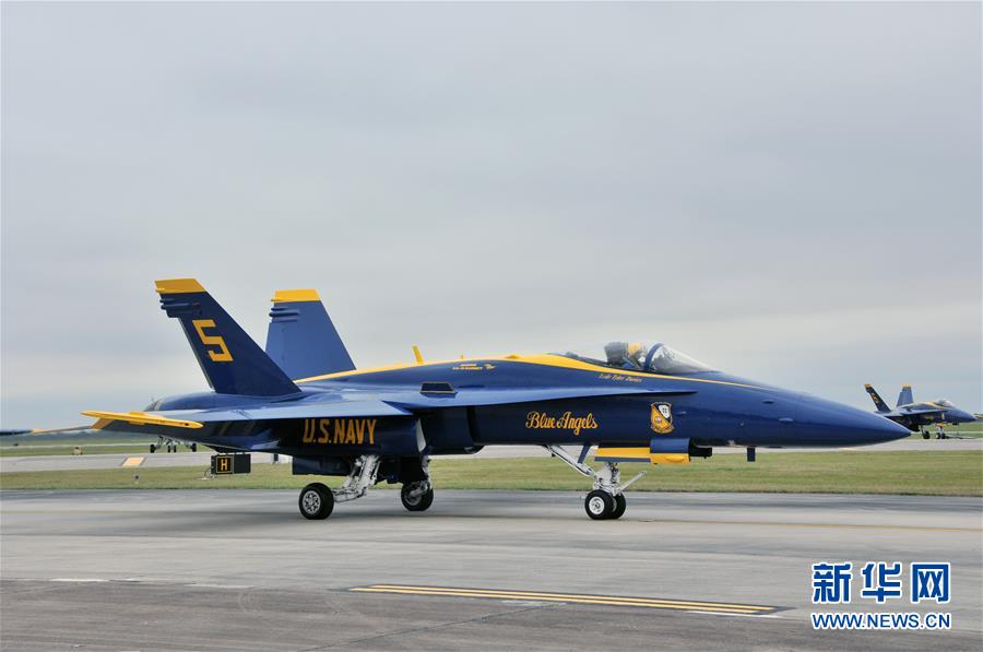 10月20日,在美国休斯敦,一架美国海军“蓝天使”飞行表演队的飞机准备起飞。
