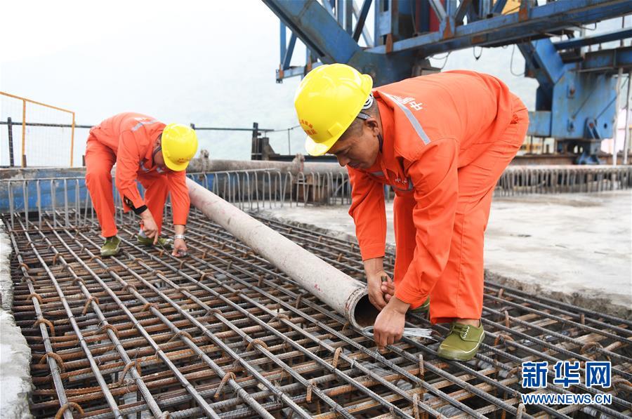 10月23日,在重庆涪陵,施工人员在渝怀铁路涪秀二线重点工程——乌江右线大桥主跨合龙现场作业。 当日,由中铁四局承建的渝怀铁路涪秀二线重点工程——乌江右线大桥主跨成功合龙,标志着大桥主体工程全部顺利结束。乌江右线大桥项目全程460.1米,主跨192米,跨越乌江和319国道。在两年多的建设过程中,施工人员攻克了“不等高墩”“不对称边跨”“边跨入隧”等多个技术难题。 新华社记者王全超摄