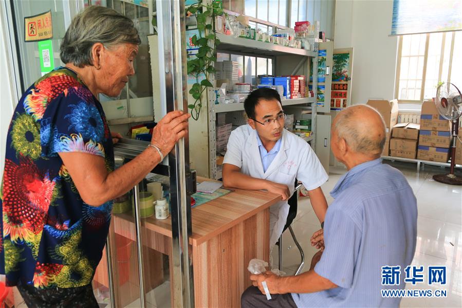 在山东费县朱田镇崔家沟社区,当地村民在卫生室就诊(8月22日摄)。崔家沟村是远近闻名的“光棍村”“贫困村中的贫困村”。2016年3月,崔家沟村在中央异地搬迁政策的扶持下,实现了整体搬迁,1600多口人搬到了镇驻地。从此,昔日的“光棍村”,一跃进入朱田镇富裕村行列。新华社记者 王南 摄