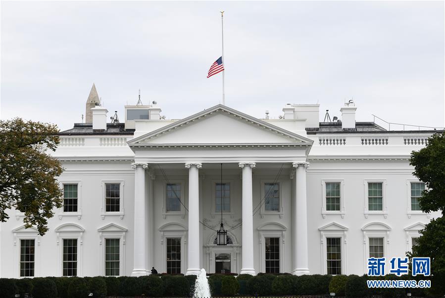10月28日,在美国首都华盛顿,白宫降半旗哀悼匹兹堡枪击事件遇难者。美国匹兹堡市一座犹太教堂27日发生枪击事件,造成11人死亡、6人受伤。 新华社记者 刘杰 摄