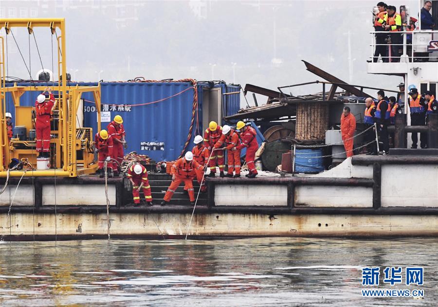 重庆万州坠江公交车打捞深潜设备到位 潜水员正下潜勘测