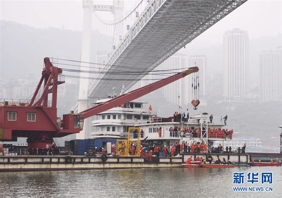 重庆万州坠江公交车打捞深潜设备到位 潜水员正下潜勘测