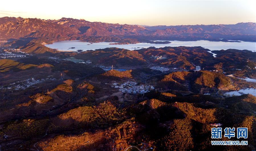 阳光照在北京密云水库旁的山野上(10月30日无人机拍摄)。