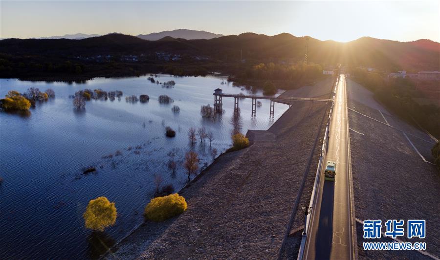 阳光照在北京密云水库旁的山野上(10月30日无人机拍摄)。