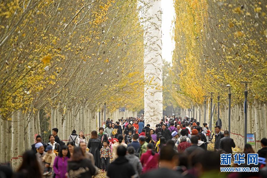 市民在宁夏银川市凤凰公园欣赏秋景(10月20日摄)。