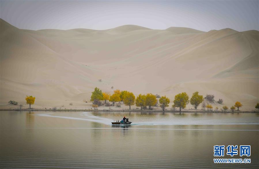 在位于新疆巴音郭楞蒙古自治州尉犁县的一处名叫“罗布湖”的海子里,渔民在捕鱼(10月17日摄)。 新华社记者 赵戈 摄