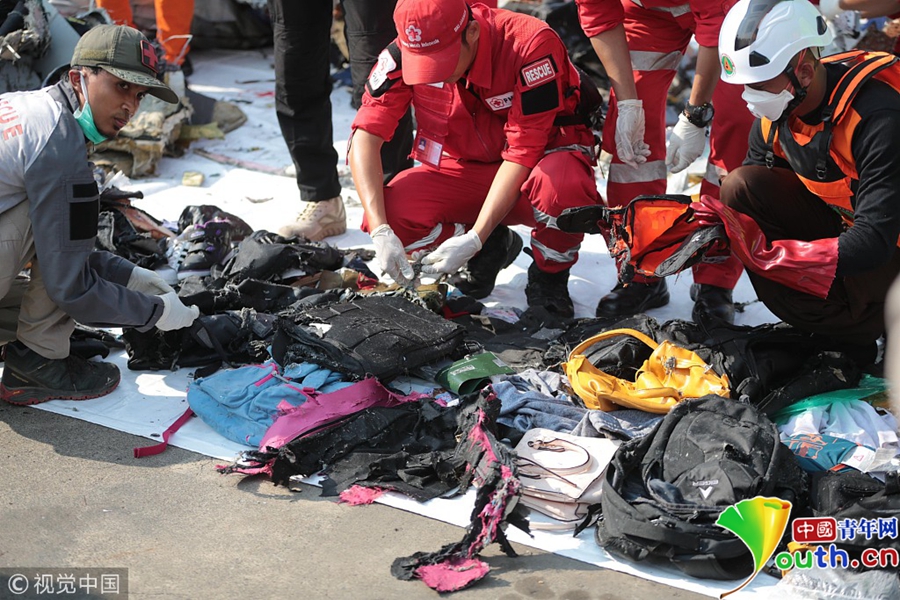 印尼继续打捞狮航坠机残骸和遗体 遇难者遗物摆满一地