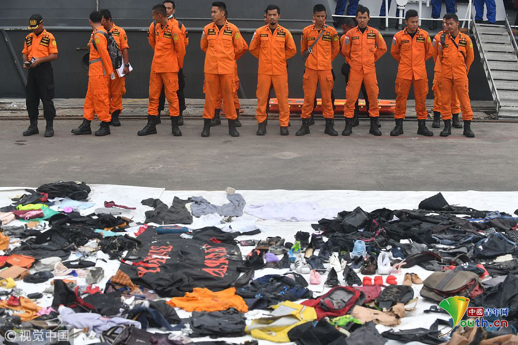 当地时间2018年10月30日,印尼雅加达, 印尼搜救队持续打捞出狮航坠毁客机遇难者遗物和飞机残骸。一架载有189人的印尼狮子航空(Lion Air Air)客机在从首都雅加达飞往邦加槟港过程中坠海。机上载有181名乘客,6名机组人员和2名飞行员,乘客中包括20名官员。图片作者:ADEK BERRY