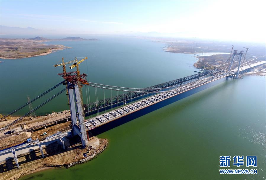 当日,河北省怀来县官厅水库公路大桥主桥成功合龙。据介绍,该桥采用双向四车道城市主干路标准建设,设计为双塔单跨悬索桥,全长1988米, 桥主塔高107.8米,桥宽33.6米,主桥720米一跨过湖。