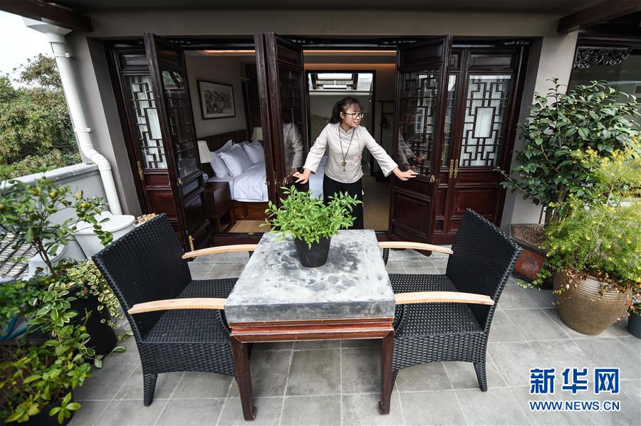 10月31日,在苏州市吴江区同里古镇的一处民宿,工作人员在打扫房间。 新华社记者李博摄