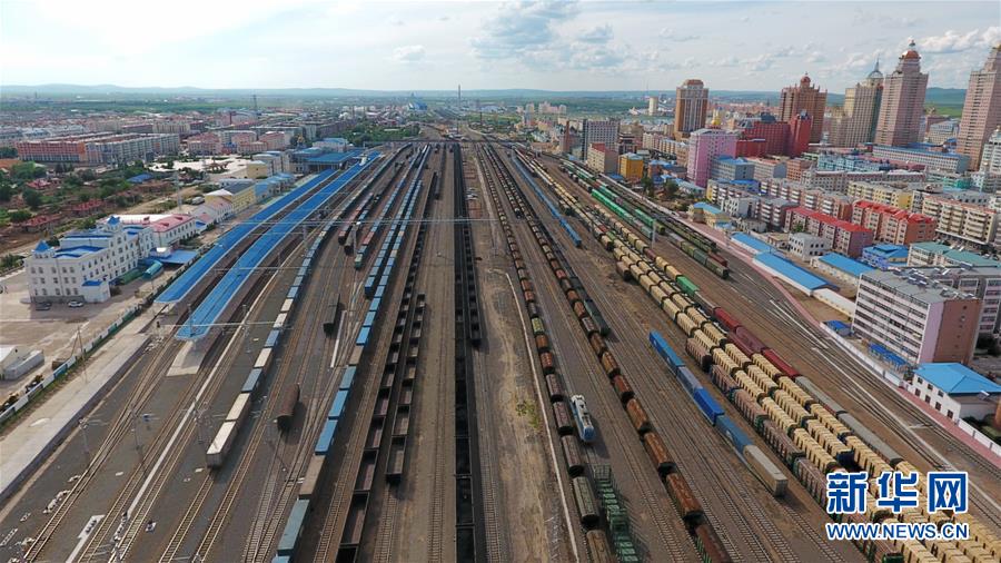 这是7月15日拍摄的满洲里火车站(无人机拍摄)。 1988年,满洲里被国家设立为经济体制改革开放试验区,开启国门,实现边境贸易“零突破”。1992年,满洲里被国家确定为首批沿边开放城市,袖珍边城自此插上腾飞的翅膀。如今,满洲里口岸承担着中俄贸易60%以上的陆路运输业务,成为全国最大陆路口岸。 新华社发