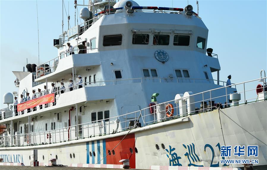 11月3日,“海巡21”轮准备出发。当日,随着“海巡21”轮缓缓驶离海口海事监管基地码头,由琼桂粤海事部门共同开展的琼州海峡、北部湾及环海南岛水域跨辖区联合巡航执法活动揭开序幕。新华社记者杨冠宇摄
