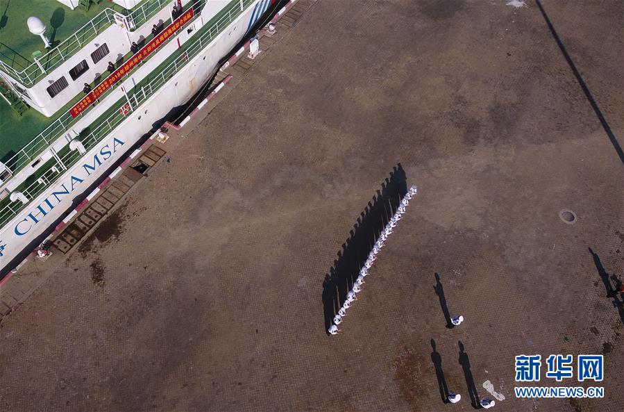 11月3日,海事执法人员准备登上“海巡21”轮(无人机拍摄)。当日,随着“海巡21”轮缓缓驶离海口海事监管基地码头,由琼桂粤海事部门共同开展的琼州海峡、北部湾及环海南岛水域跨辖区联合巡航执法活动揭开序幕。新华社记者杨冠宇摄