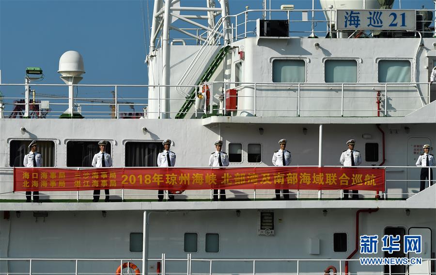 11月3日,海事执法人员乘“海巡21”轮出发。当日,随着“海巡21”轮缓缓驶离海口海事监管基地码头,由琼桂粤海事部门共同开展的琼州海峡、北部湾及环海南岛水域跨辖区联合巡航执法活动揭开序幕。新华社记者杨冠宇摄
