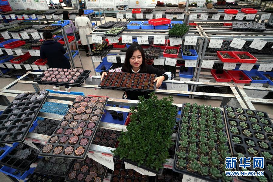 11月3日,在贵溪市欧绿多肉植物种植基地,工作人员为“双十一”购物节备货。新华社记者宋振平摄