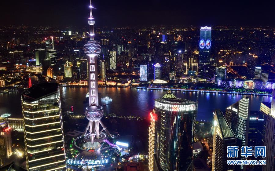 这是11月1日拍摄的上海陆家嘴夜景。 首届中国国际进口博览会即将在上海开幕。美丽的上海张开怀抱,迎接八方来客。 新华社记者 才扬 摄