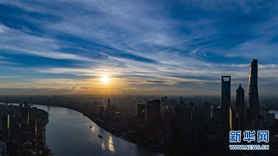 11月1日,上海浦江两岸的建筑沐浴在晨光中。 首届中国国际进口博览会即将在上海开幕。美丽的上海张开怀抱,迎接八方来客。 新华社记者 沈伯韩 摄
