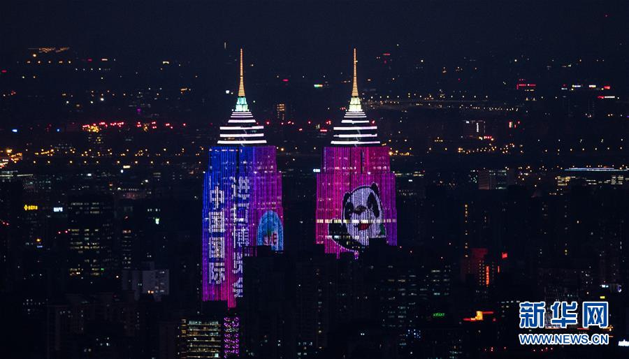 11月2日,上海环球港的灯光展示出首届中国国际进口博览会标识和吉祥物“进宝”的形象。 首届中国国际进口博览会即将在上海开幕。美丽的上海张开怀抱,迎接八方来客。 新华社记者 王建华 摄
