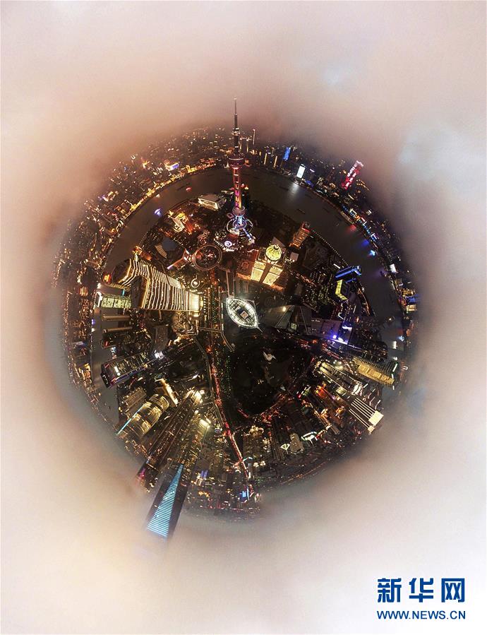 11月1日拍摄的上海夜景(全景拼接照片)。 首届中国国际进口博览会即将在上海开幕。美丽的上海张开怀抱,迎接八方来客。 新华社记者 殷刚 摄
