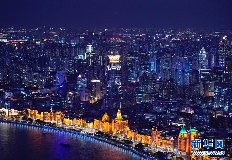 这是11月1日拍摄的上海外滩夜景。 首届中国国际进口博览会即将在上海开幕。美丽的上海张开怀抱,迎接八方来客。 新华社记者 邢广利 摄
