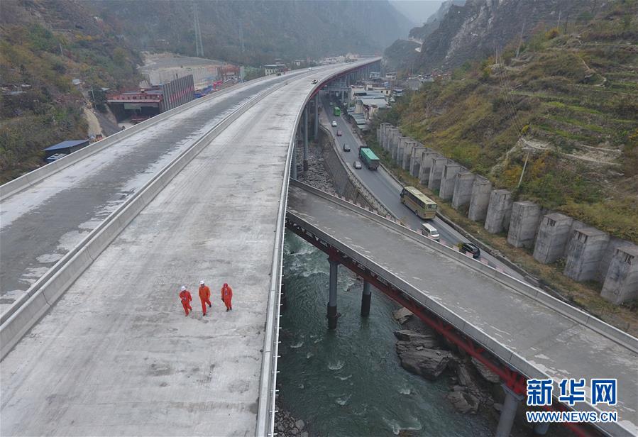 11月3日,安全管理员在克枯大桥上检查。 当日,位于四川省阿坝藏族羌族自治州的汶(川)马(尔康)高速的控制性工程克枯大桥合龙。 新华社记者 刘坤 摄