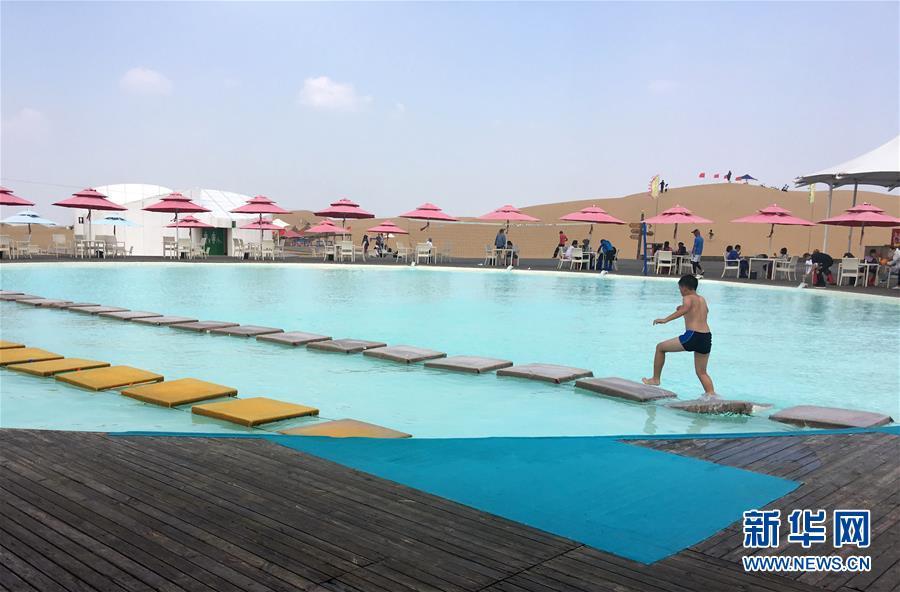 游客在库布其沙漠中的内蒙古鄂尔多斯市达拉特旗响沙湾景区的沙地上荡秋千(7月31日摄)。依托库布其沙漠特有的自然风光和多年生态建设的成果,当地建成响沙湾、七星湖、恩格贝等生态旅游景区。近十年来,鄂尔多斯市生态旅游景区累计接待游客近1000万人次,实现收入24.6亿元。