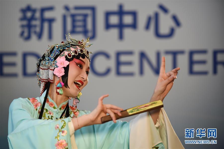 11月4日,在首届中国国际进口博览会新闻中心,演员展示昆曲艺术。新华社记者 韩瑜庆 摄