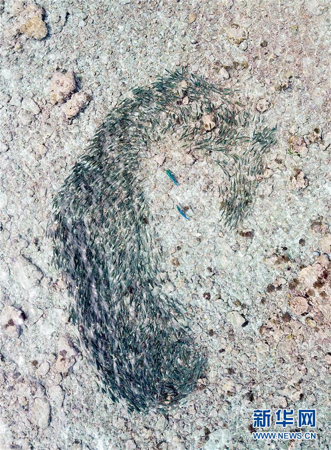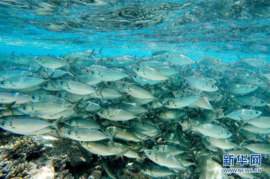 这是11月1日在纽埃海岸浅滩中拍摄的鱼群。 新华社记者郭磊摄