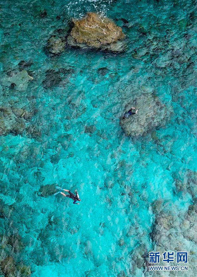 11月2日,两名浮潜爱好者在纽埃海岸浮潜。 新华社记者郭磊摄