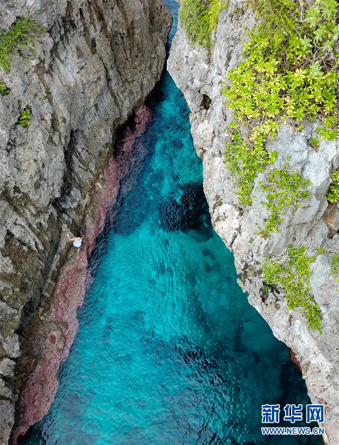 这是10月31日在纽埃国王池拍摄的攀岩女子。 新华社记者郭磊摄