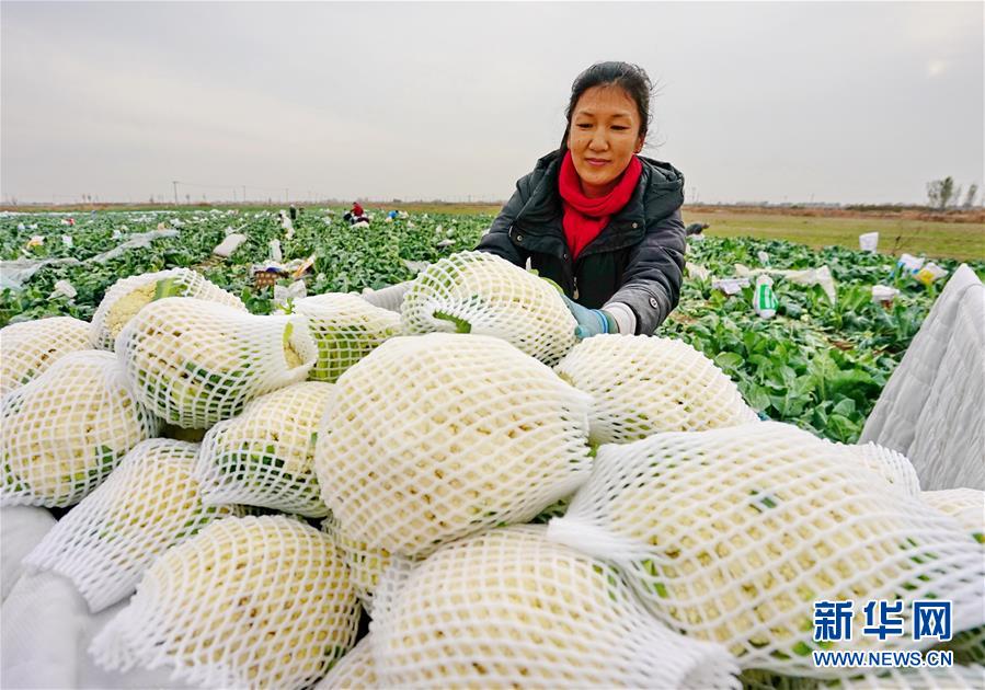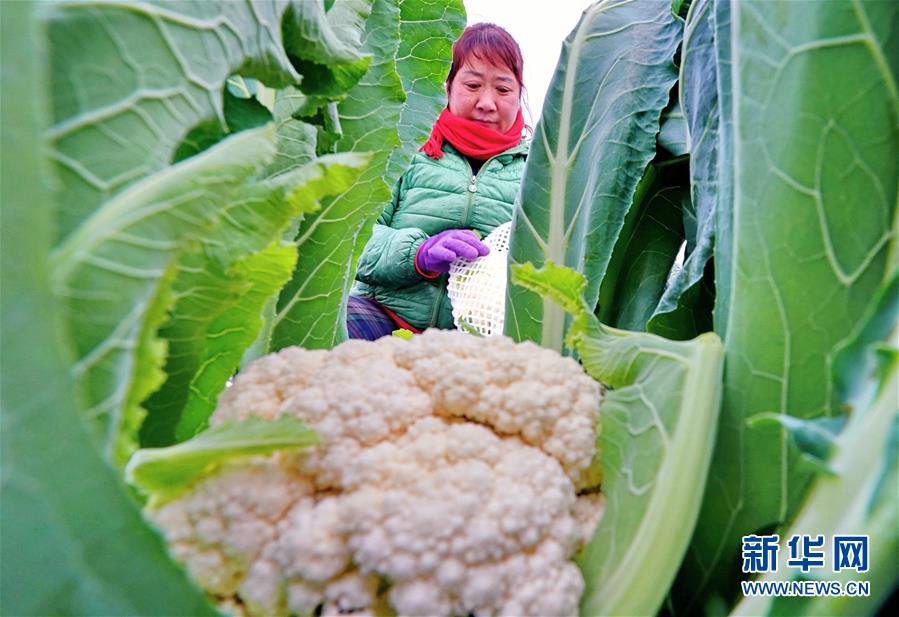 11月5日,唐山海港经济开发区王滩镇东高各庄村的菜农在收获菜花。 新华社记者 杨世尧 摄