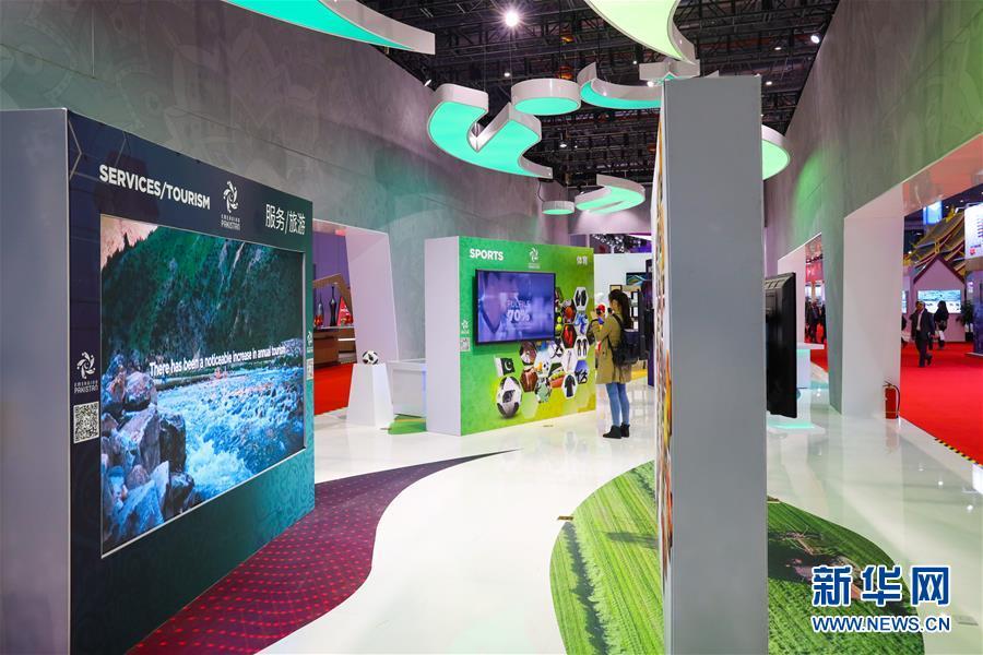 11月5日,一位女士在巴基斯坦展馆内参观。 新华社记者 刘大伟 摄