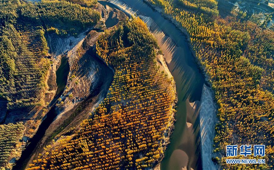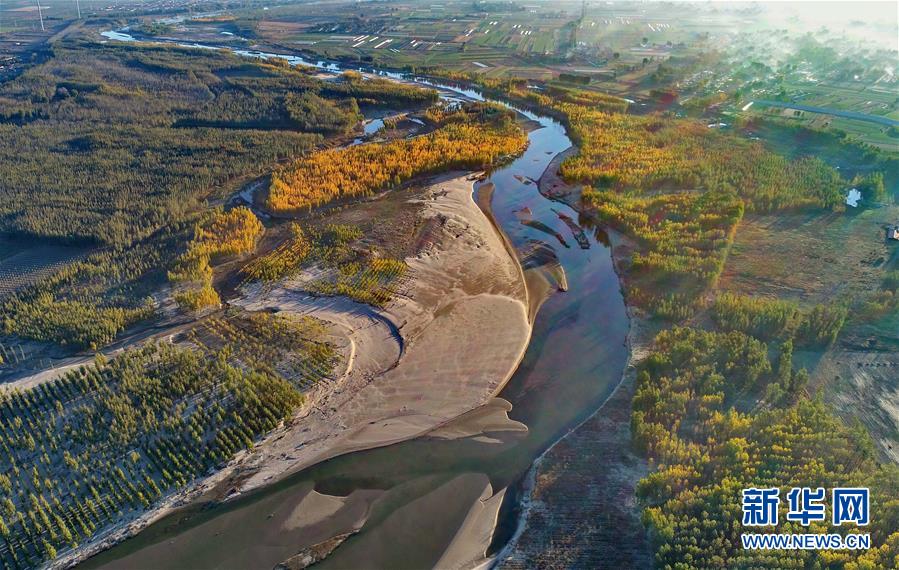 深秋时节,流经河北省乐亭县的滦河两岸色彩斑斓,宛如画境。
