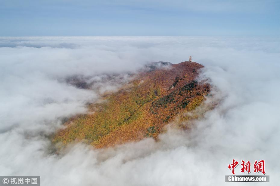 10月6日晨曦到中午,黑龙江鸡西,中俄界湖兴凯湖北岸蜂蜜山国家地质公园,再现云海为长假收关。 图片来源:视觉中国