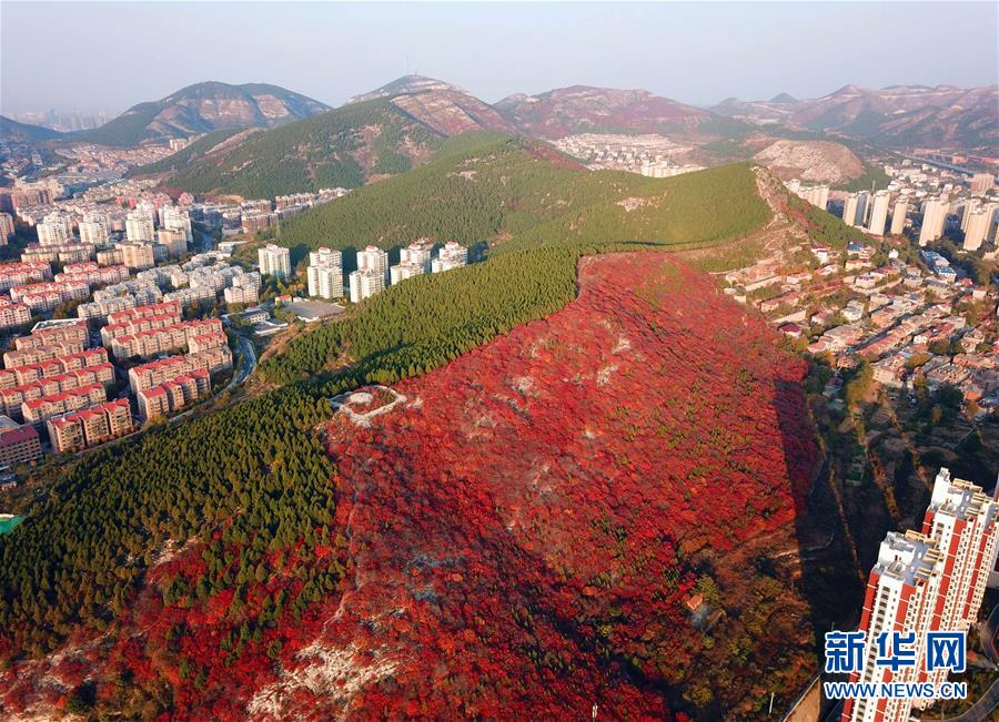 这是“一山双色”的山东济南楔子山(10月31日无人机拍摄)。 新华社记者朱峥摄