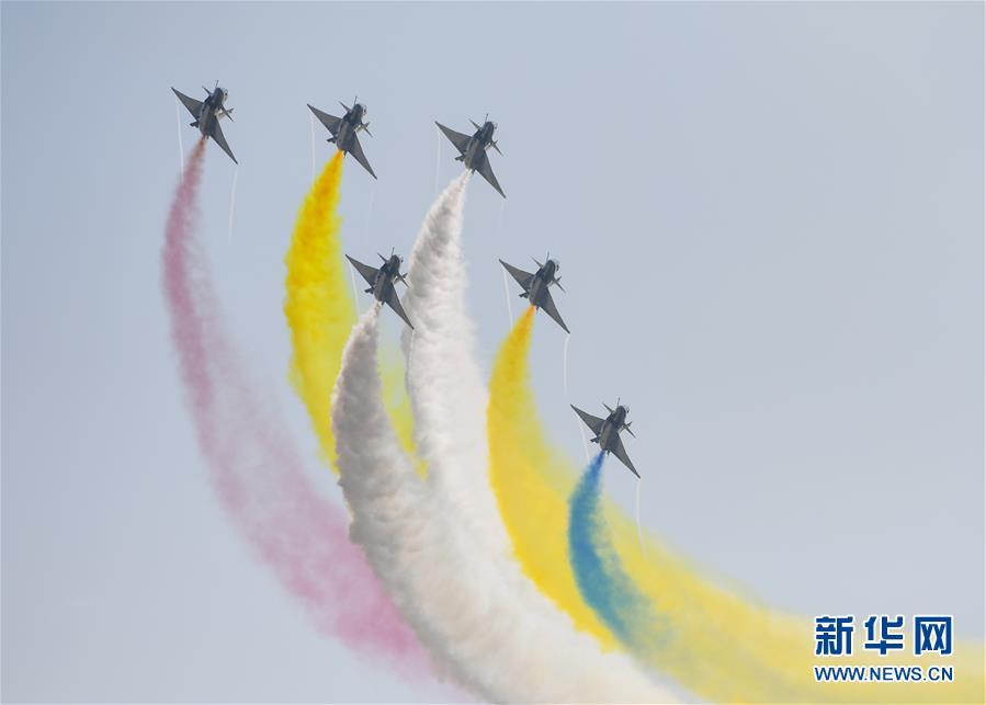 11月6日,中国空军八一飞行表演队在航展现场进行飞行表演。当日,第十二届中国国际航空航天博览会在珠海开幕。 新华社记者刘芳摄