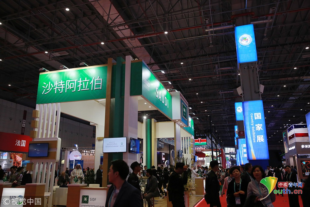 2018年11月6日,上海,首届中国国际进口博览会国家展上,共有82个国家、3个国际组织设立了71个展台。沙特阿拉伯馆。视觉中国