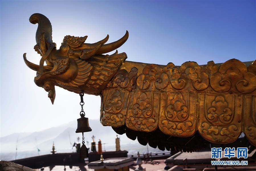 修缮后的布达拉宫金顶局部(11月7日摄)。 新华社记者普布扎西 摄