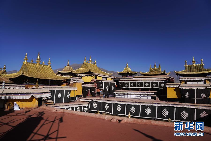 修缮后的布达拉宫金顶群(11月7日摄)。