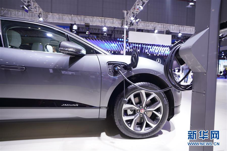 这是11月5日在汽车展区拍摄的捷豹纯电动I-PACE汽车。新华社记者 孟鼎博 摄