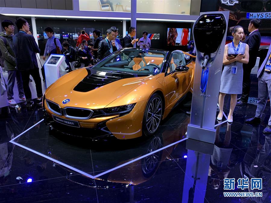 这是11月7日在汽车展区拍摄的宝马i8混合动力跑车。新华社记者 牛晓雷 摄