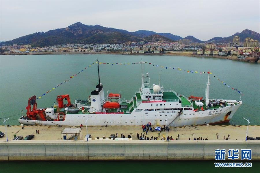 11月7日,“大洋一号”驶入位于青岛市崂山区的青岛海洋科学考察基地码头。新华社记者 李紫恒