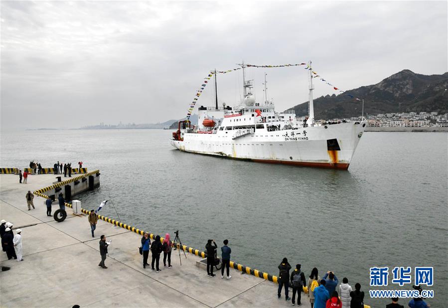 11月7日,“大洋一号”驶入位于青岛市崂山区的青岛海洋科学考察基地码头。新华社记者 李紫恒